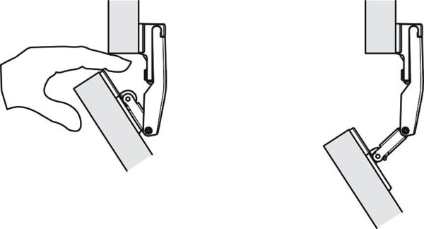 With finger protection function – if fingers are accidentally inserted into the flap gap, the hinge unhooks itself to prevent injuries.