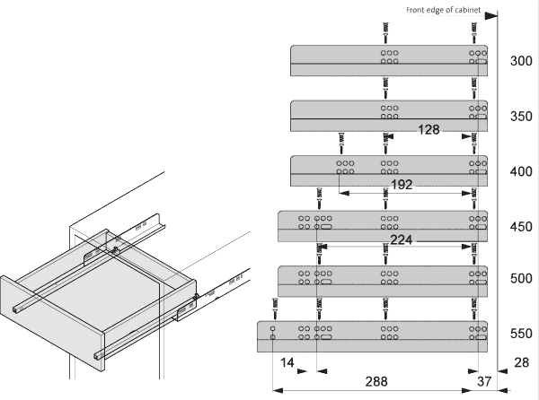 Complete set for one drawer.