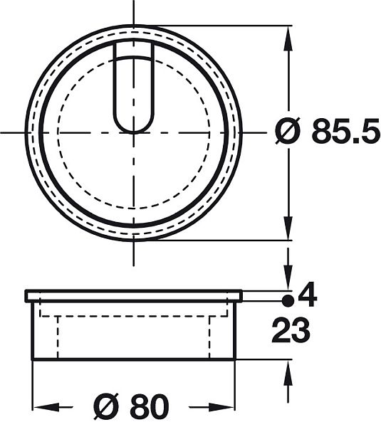 Cable Outlet, Diam 80 mm, Two Part, Wood.Depth 23 mm, Oak clear lacquered finish.
