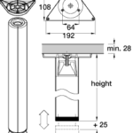 Legs have a black plastic height adjustable foot giving + 25 mm adjustment