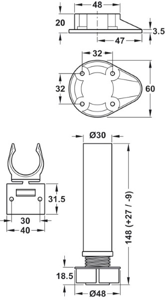Black Plastic Plinth Feet Set, Screw Fixing. For 150 mm plinth height