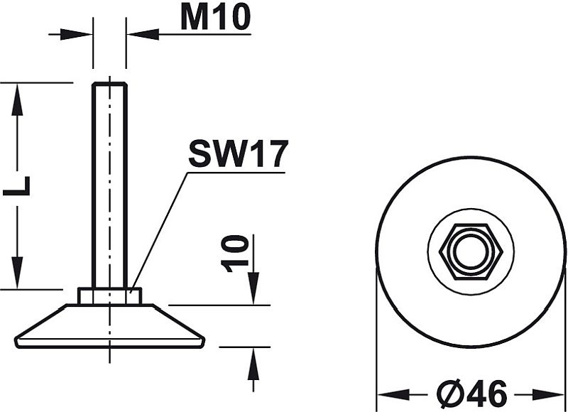 Suitable for use with glides and furniture legs with M10 internal thread