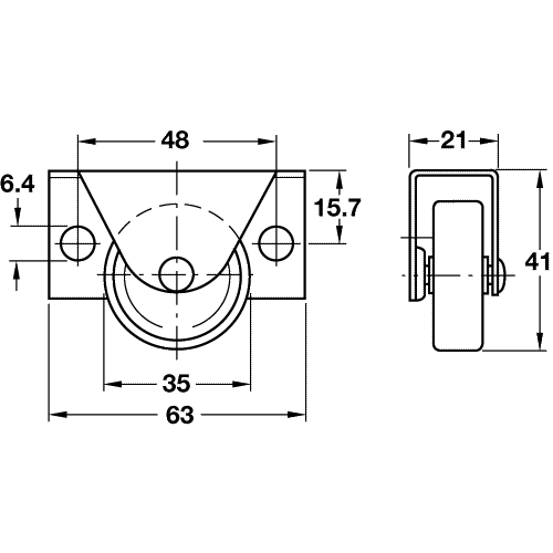Fixed Single Wheel Castor, without Brake, ร 35 mm, Side Plate Fixing for Underbed Boxes.