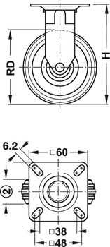 Fixed castor, plate fixing, approx 40kg, Diam: 50mm