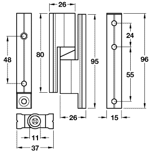Cubicle Hinge set, to suit board thickness 17-21mm.