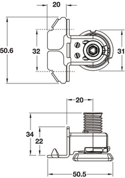 Plate has spikes which are easily hammered onto cabinet bottom edge, then secured in position by a countersunk 15 mm length screw from underneath first and also 2x pan head x 15 mm length screws from the side