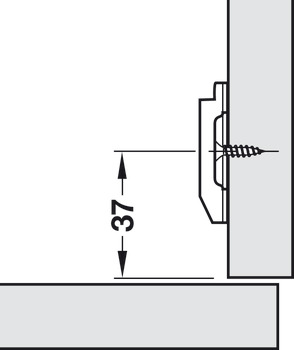 Mounting Plate, Keyhole, One Part Plate, for Häfele Metalla Concealed Mini Hinges and Refrigerator Hinges. Height 0mm. Wood screw fixing.