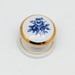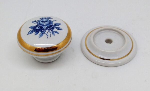 Porcelain wardrobe knob in Blue Bouquet and White. Approximately 38mm diameter, 32mm high (with rose), 26mm high (without rose). Can be used with or without the rose.