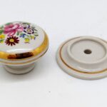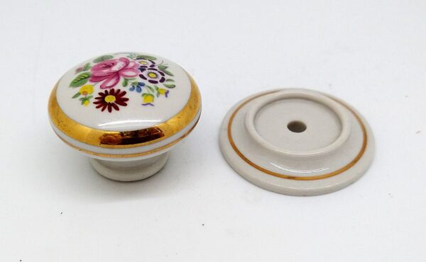Porcelain wardrobe knob in Floral Chintz and Ivory. Approximately 38mm diameter, 32mm high (with rose), 26mm high (without rose). Can be used with or without the rose.