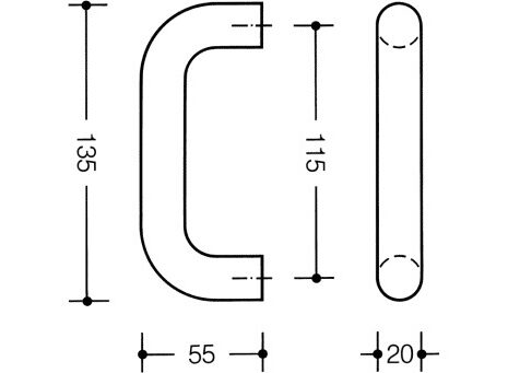 HEWI nylon pull handle 20mm diameter. Fixing points 115mm centre to centre. Screw fixing (not supplied).