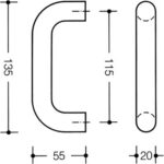 HEWI nylon pull handle 20mm diameter. Fixing points 115mm centre to centre. Screw fixing (not supplied).
