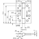 Royde & Tucker H207 three knuckle butt hinge, maximum adjusted door weight 120kg, to BS EN 1935 Grade 13 Minimum door thickness 35mm.