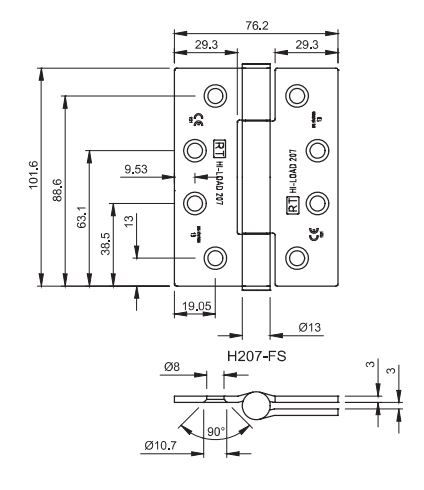@HI-LOAD BUTT HINGE EN1935 101×76 TYPE 304 SATIN STAINLESS STEEL