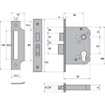 Euro profile cylinder mortice sashlock for use on external wooden hinged doors providing a high level of security. CE Marked door lock Fire rated to BS EN 1634-1:2000 & Performance rated to BS EN 12209. Latchbolt operated by lever handle from either side. Deadbolt operated by key from either side using a double cylinder or by key outside and thumb turn inside using a single cylinder with turn. Supplied with striker plate and fixing screws. Stainless steel (SS) finish.