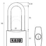 40mm body width. 6.35mm shackle. 50mm shackle height.