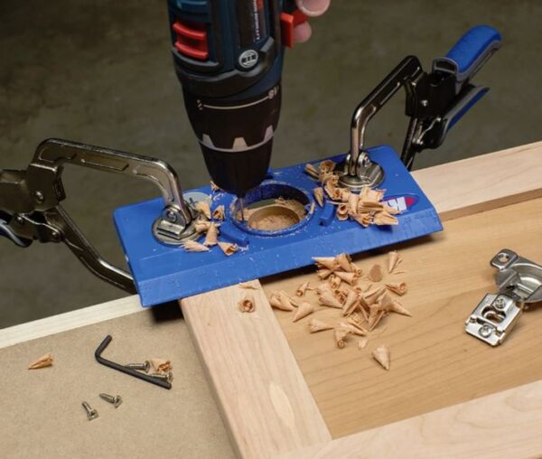 Make cabinet door installation easy. Get drill press accuracy with any hand drill. The Concealed Hinge Jig takes the guesswork out of installing cabinet doors using concealed hinges. This economical, easy-to-use jig ensures accurate hinge alignment, so you can install doors that fit great and work well. Plus, the Concealed Hinge Jig works with an ordinary drill and the included carbide tipped bit.