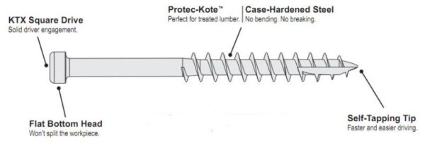 These high-quality decking screws are perfect for use with the Kreg Deck Jig or as a general fastener for a wide variety of deck projects. Protec-Kote features three anti-corrosion layers chemically-combined to provide strong protection against rust and corrosion in many common outdoor applications. Perfect for ACQ-treated lumber. This kit includes 525 Protec-Kote Deck Screws. Also includes KTX Square driver bit.