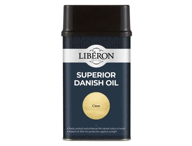 Liberon Superior Danish Oil is a blend of pure tung oil and natural oils which protect hard and soft woods. It is a penetrating oil, which brings out the natural grain of the timber and provides a satin to gloss sheen. With added UV filters to help prevent discolouration from the sun it is suitable for interior and exterior use.
