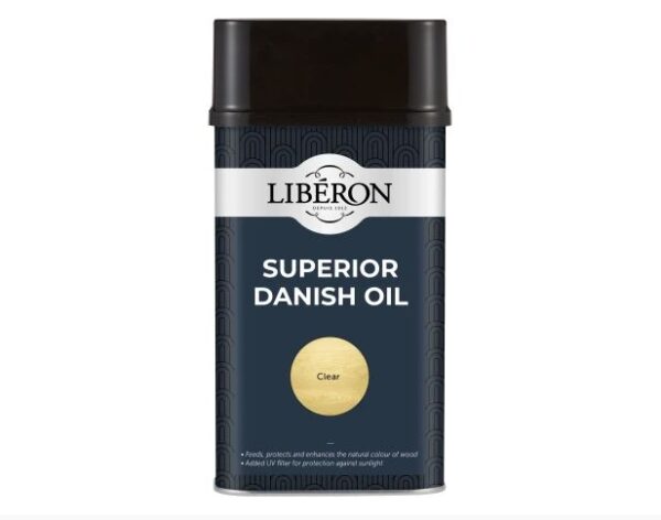 Liberon Superior Danish Oil is a blend of pure tung oil and natural oils which protect hard and soft woods. It is a penetrating oil, which brings out the natural grain of the timber and provides a satin to gloss sheen. With added UV filters to help prevent discolouration from the sun it is suitable for interior and exterior use.