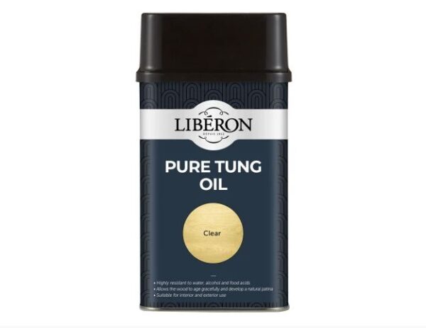 Liberon Pure Tung Oil is highly resistant to water, alcohol and food acids. Providing a hard wearing finish it is ideal for surfaces such as kitchen worktops, tables and all high quality interior wood. Pure Tung Oil, with no added dryers, is a natural, non-toxic product which can be used on toys and objects in contact with food such as salad bowls etc. Being a penetrating oil it allows the wood to age gracefully and develop a natural patina. Recommended for use on exterior oak.