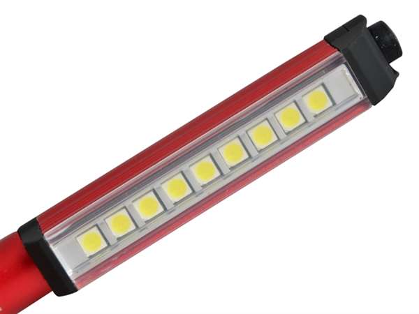 A compact pocket sized inspection light manufactured from aluminium. It features nine super bright LEDs that provide a powerful 180 Lumen flood light for up to five hours – ideal for inspection work and general illumination. The durable aluminium body is fitted with a magnetic pocket clip that allows the light to be attached to most metal surfaces for hands free use and may be swivelled through 180 degrees to shine the light in the correct position.
