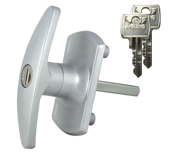 `T` style garage door handle with screw fixing.Square spindle