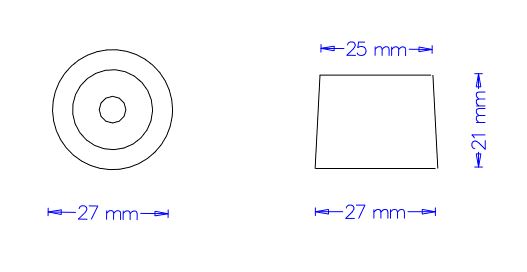 Door stop 27mm. White rubber. Screw fixing (not supplied). Wall or floor mounted.
