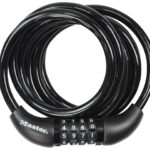 Master Lock 1.8m Self Coiling Combination Cable with a pin tumbler cylinder and a coloured vinyl covering that helps to prevent scratching.