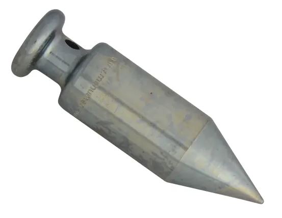 Monument Steel bodied plumb bob with facility for attaching to line.
