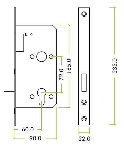 DIN Standard 60mm backset Euro Mortice Deadlock Case