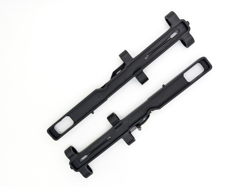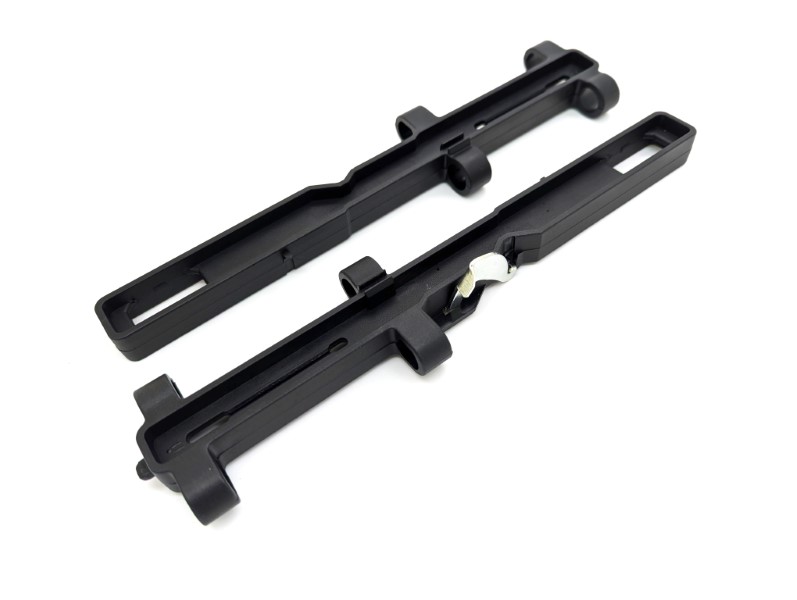 A pair of replacement plastic blade guides for the Nobex Champion mitre saw. Includes metal swinging frame support clip on one blade guide.