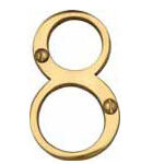 Polished Brass Face Fix Numeral from the Heritage Brass range. No.8. Dimensions: 76mm high. These finest quality numerals are suitable for external use and are easily viewed from a long distance.
