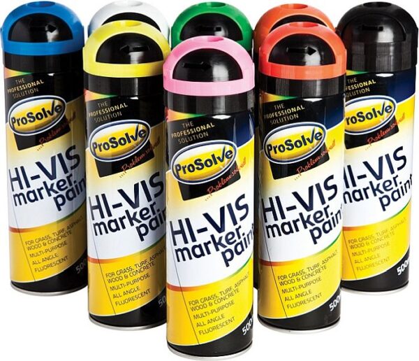 ProSolve Hi-Vis Fluorescent is a high quality, fast drying and hard wearing acrylic ‘all angle’ marker paint which is a lead and xylene free formulation, designed to produce fluorescent marks and lines on a range of indoor and outdoor surfaces including concrete, tarmac, wood and composites. Widely used throughout a vast array of industries including surveying, construction, warehousing, logistics, forestry etc, and is especially useful where brighter, fluorescent marks and lines are required.