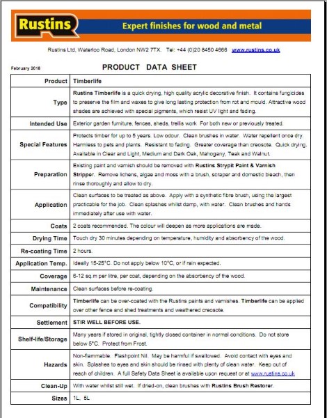 Protects and adds life to garden timber. For new or weathered sheds and fences. Highly water repellent and resistant to fading. It is also harmless to pets and plants. Clean brushes in water.