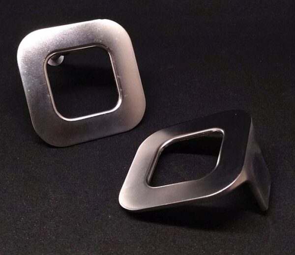 Retro drawer pull in Satin Chrome finish. 51mm rounded square. 25mm projection. Single screw fixing.