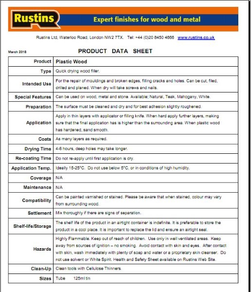A quick drying filler available in Oak. It is waterproof and suitable for interior and exterior applicationd and is excellent for use on edges. When it is dry it will take screws and nails. Size: 20g Tube in Oak.