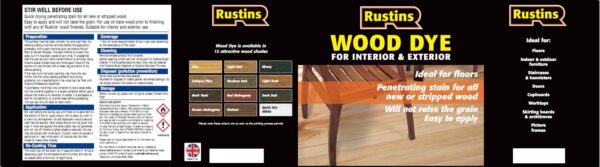 Rustins Wood Dye – For use on bare wood prior to finishing with any of Rustins wood finishes. Quick drying penetrating stain, does not raise the grain. Supplied in 11 shades, which may be intermixed to make an infinite variety of natural wood shades. Antique Pine finish.