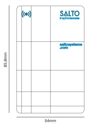 Salto Contactless Keycard. NXP MIFARE DESFire 2K Technology. Compatible with SALTO SPACE platform. PVC Material card. SALTO Standard Design White + one side blank. Re-programmable. Water resistant & suitable for a non-hostile environment. Pack of 50 cards.