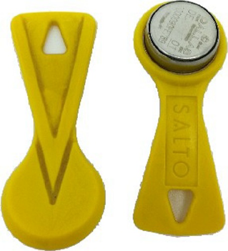 512 byte fob for use with all Salto iButton Contact ROM Locksets, E-cylinders and Wall readers. Suitable as User or Program fob, normally enrolled at the reader. Optional Salto ROM software allows User fob encoding/recording and upload to reader via ROM programming device. Extremely resistant & suitable for most kinds of environments. Stainless Steel iButton in Yellow plastic holder for keyring attachment. Part No: Salto IBROY.