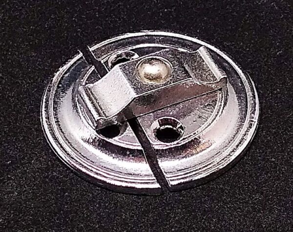 Turn button on plate. 1.1/2in diameter. Polished chrome.