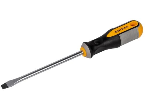 Roughneck Flared Tip Screwdrivers with S2 steel blades, which have been hardened and tempered. They also have magnetic tips and triple injected soft grip handles.