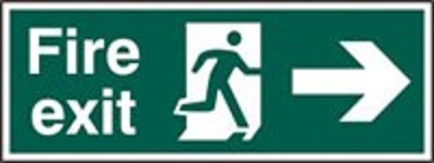 British Standard Fire Exit Arrow R Sign 400×150.