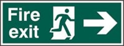 British Standard Fire Exit Arrow R Sign 600×200.