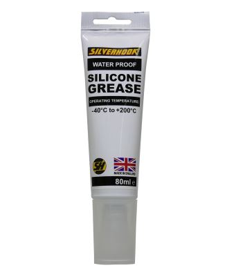 Operating temperature -30 to +180 degrees Celsius. Silverhook Silicone grease is a water repellent, non-melting silicone grease lubricant. In addition to its dielectric advantages, silicone grease is also used to lubricate plastic and polythene water pipes and other fluid pipework during assembly. It has no effect on plastics, rubbers or metals, it remains essentially unaltered in daylight & UV light. It is tasteless, odourless and non-toxic and is classed as an environmentally/user friendly product.