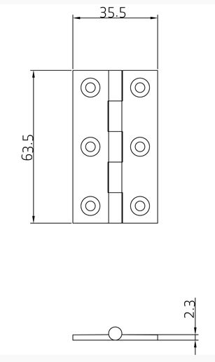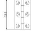 Butt hinge 63.5×35.5mm. Self colour plain solid drawn brass. Brass pin.