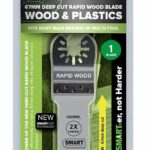 Extra long Rapid Wood blade provides a full depth cut of 67mm. Equipped with the same Rapid Wood toothing, this blade is equally as fast cutting timber and plastic as the other award-winning Rapid Wood blades in the range. The blades offer a unique SMARTCUT design that allows them to cut faster, neater and deeper than any other wood blade on the market. They are perfect for cutting into hardwoods, laminate flooring and timber with a curved tooth design for maximum precision when you start cutting. The blades have an increased blade depth of 67mm to cut all the way through 2in timber.