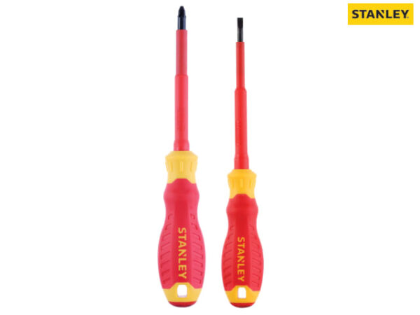 Stanley FatMax® VDE Insulated Screwdrivers feature slim insulation which allows access without modification and safe working to 1,000V. Their tri-material handles with soft grip, provide torque transmission and control. Hardened tips ensure a longer working life.