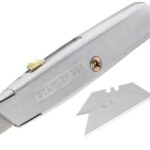 The Stanley 99E Original Retractable Blade Knife is made from grey painted die-cast metal body, which is ergonomically shaped for a comfortable grip. The blade extension can be controlled by the blade shifter with 5 blade positions for a wider range of cutting applications. The interlock nose firmly secures the blade into knife. For safety, the blade can be fully retracted into the body.