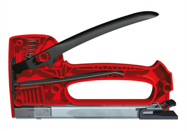 Made in tough, robust plastic with all steel wear parts inside. The staple guns are recoilless for comfort during long term use and also have a noise damper and an integrated locking function for storage. The ergonomic design with low-angle handle ensures a comfortable fit in the hand and are easy-to-use.