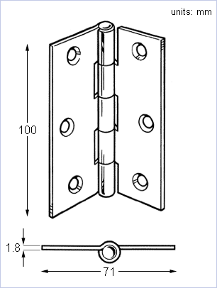 100mm x 72mm Standard 1838 Pattern Butt Hinge.
